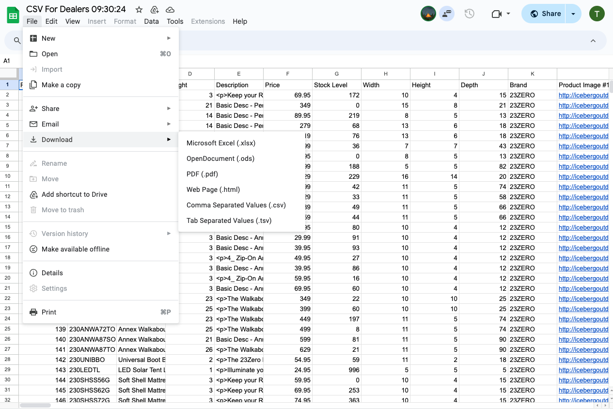 CSV PRODUCT FILE WITH IMAGES DOWNLOAD STEPS HERE! Posted by Iceberg Outdoor Group Staff on 30th Sep 2024 #Sales Announcements
